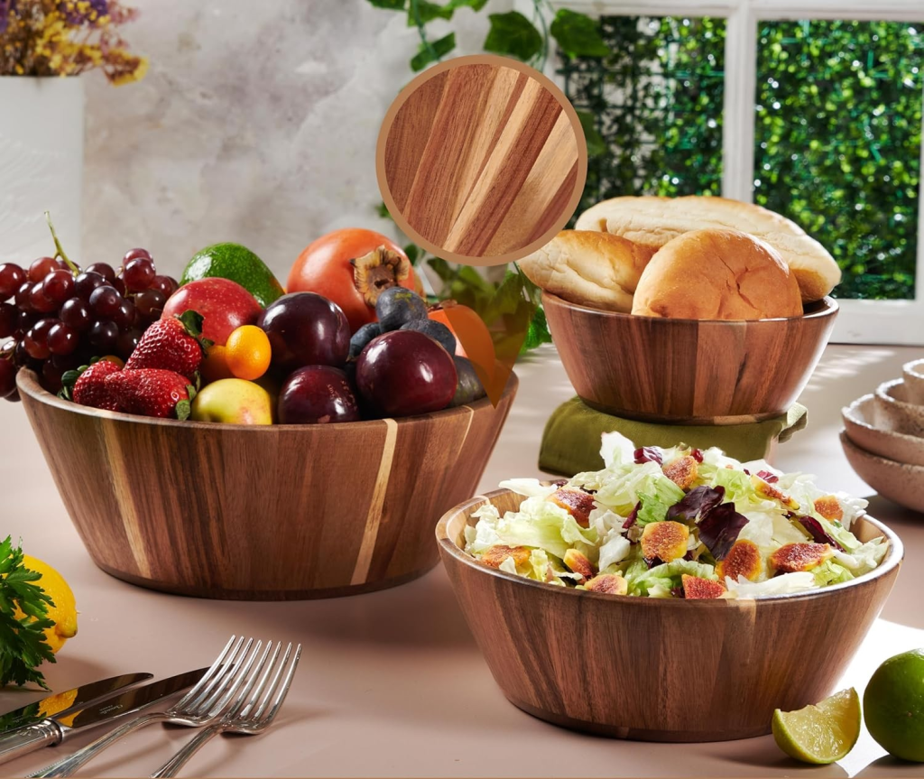 3. Wooden Serving Bowls